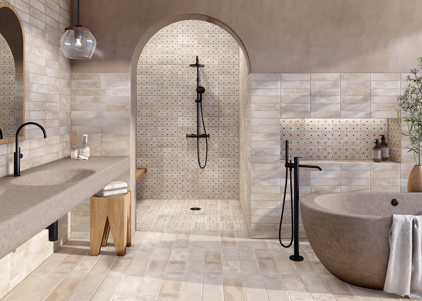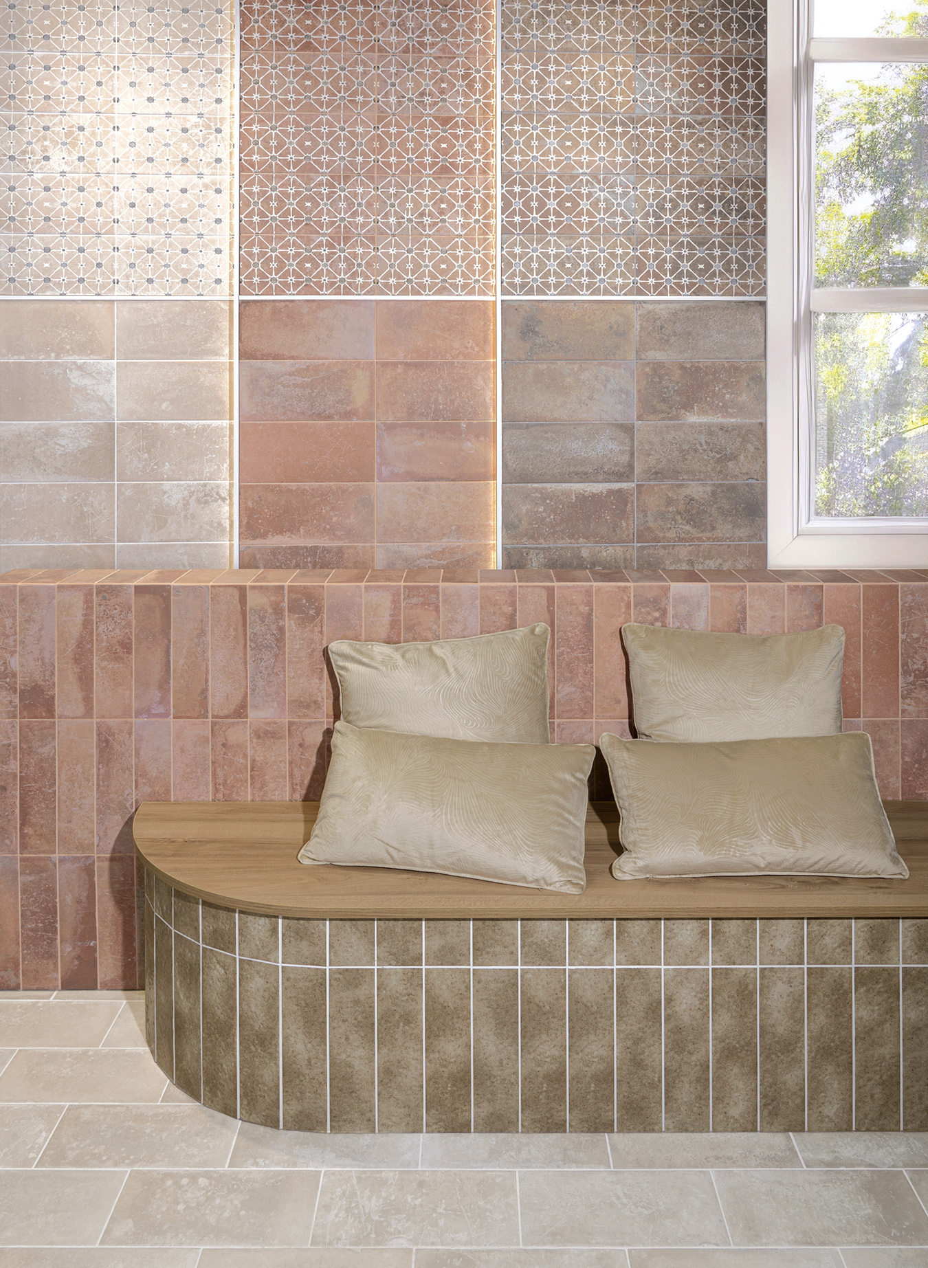 La serie Argile Decor aporta personalidad y dinamismo a los espacios gracias a sus patrones geométricos y su estética inspirada en la cerámica tradicional.