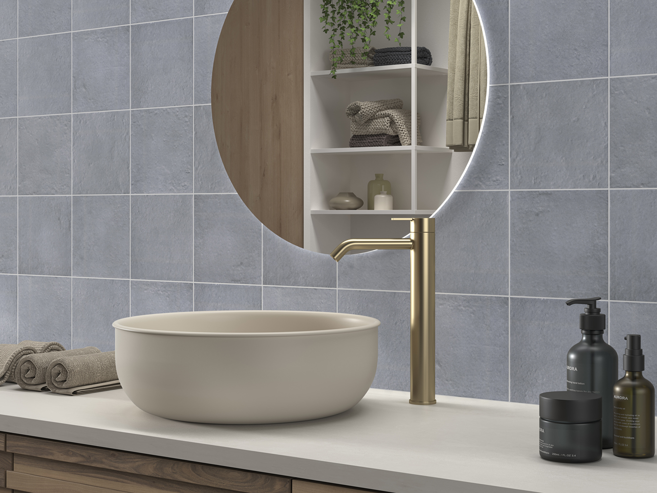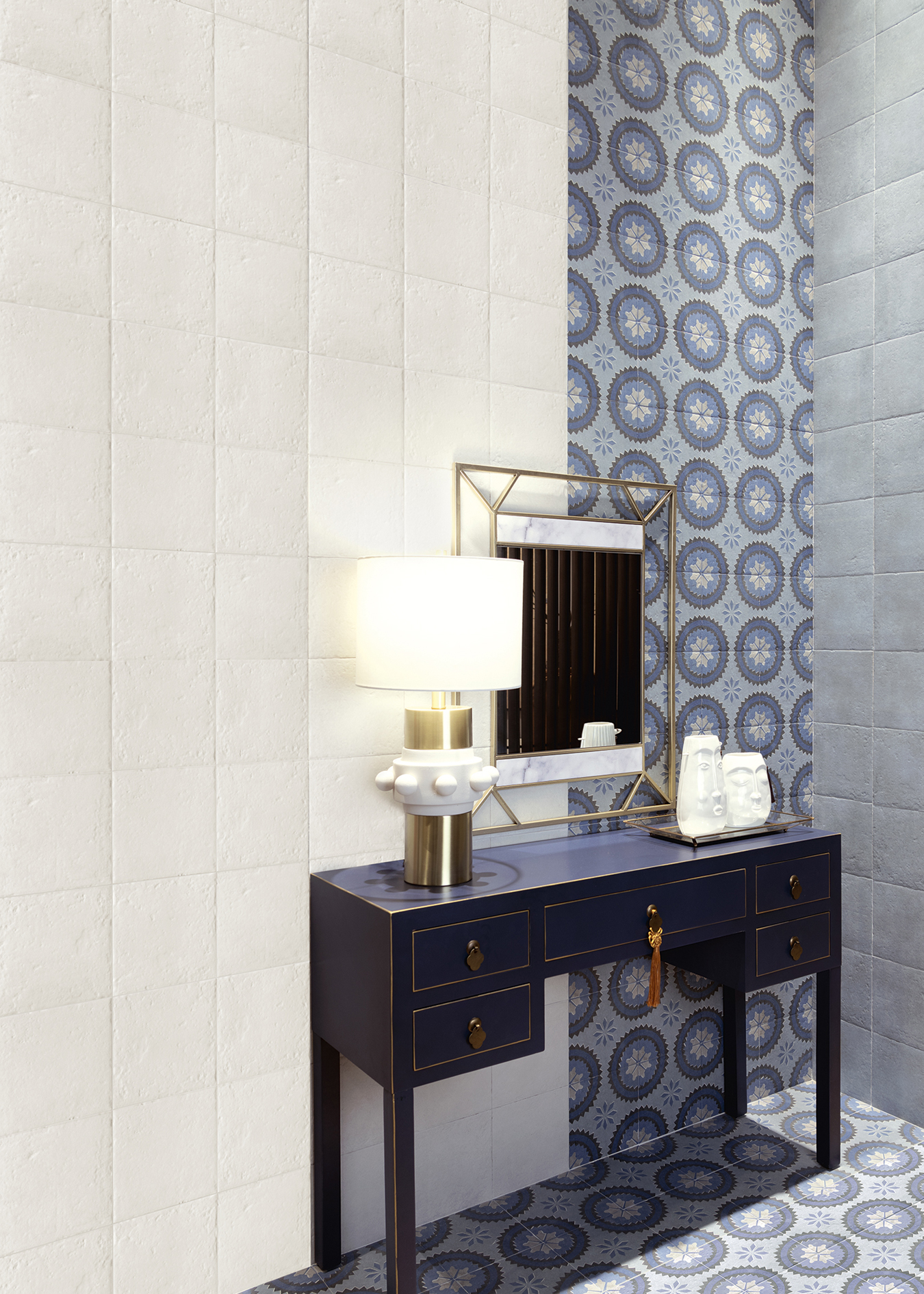 La serie Blue Water combina la frescura del azul con la pureza del blanco, creando superficies equilibradas, luminosas y con un estilo atemporal ideal para interiores con personalidad.