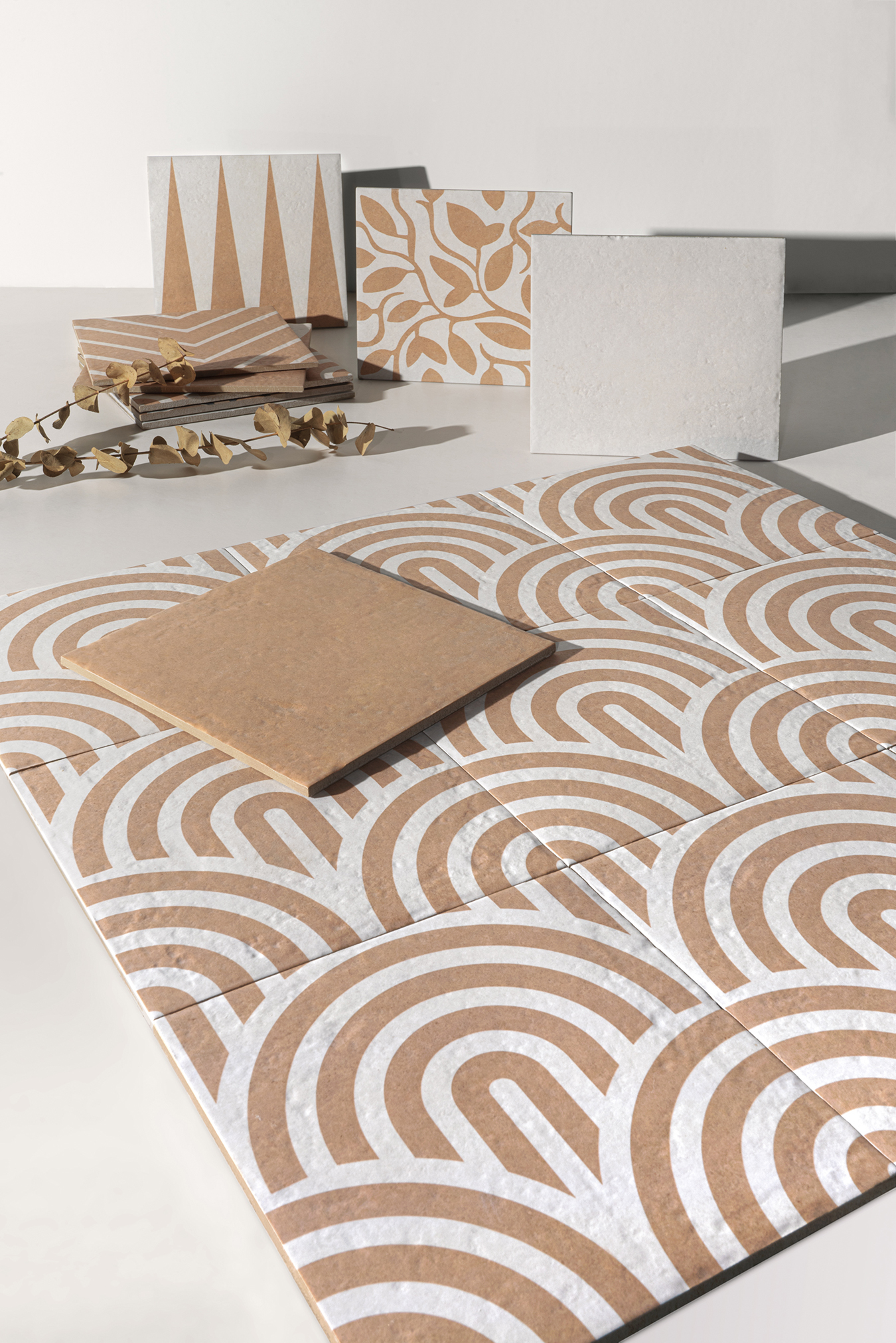 La serie Canem Terra Decor aporta dinamismo y carácter mediante patrones decorativos en tonos tierra, ideales para crear espacios cálidos, acogedores y con estilo mediterráneo.
