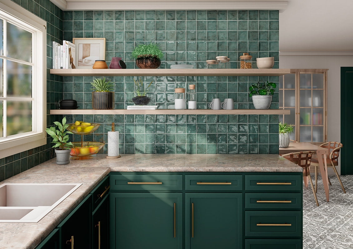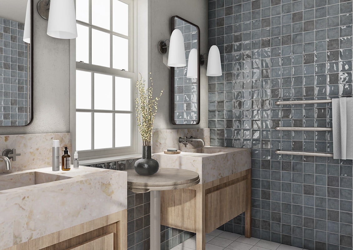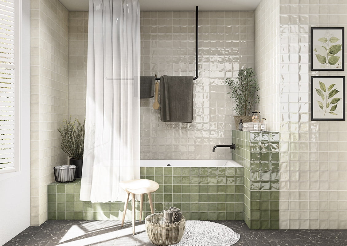 Estética Única: Destaca por su acabado brillo y su efecto irregular tipo zellige, aportando reflejos y textura artesanal.