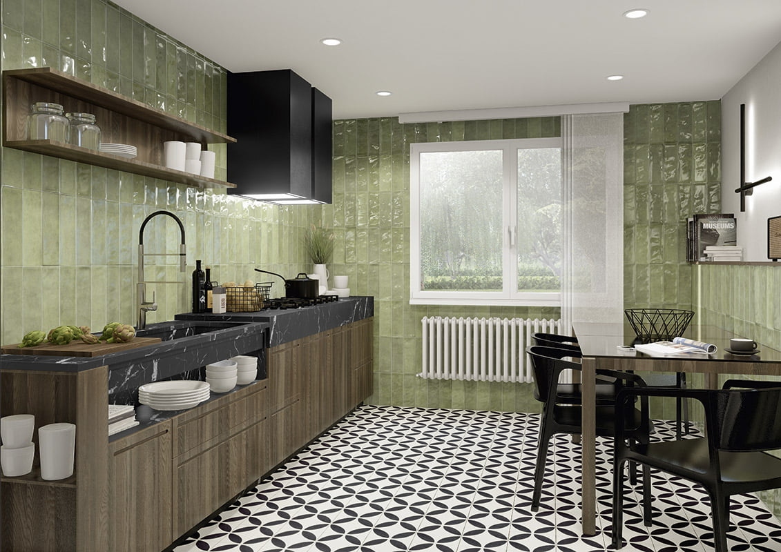 Estética Única: Destaca por su acabado brillo y su ligera destonificación, creando superficies con efecto artesanal y llenas de matices.