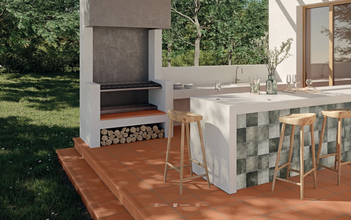 Optamos por este azulejo para la zona de la barbacoa, pues es de facil mantenimiento. y se limpia muy bien!