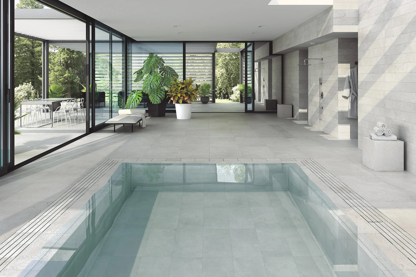 Durabilidad extrema: Es resistente al cuarteo, a las manchas (Clase 5) y al ataque de productos químicos, lo que facilita un mantenimiento sencillo en entornos exigentes como piscinas o zonas comerciales.