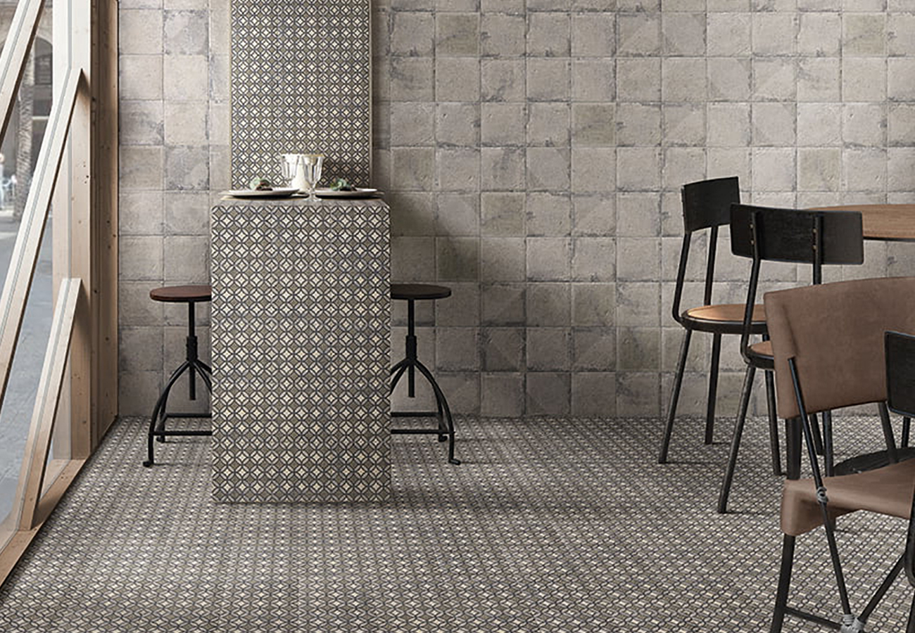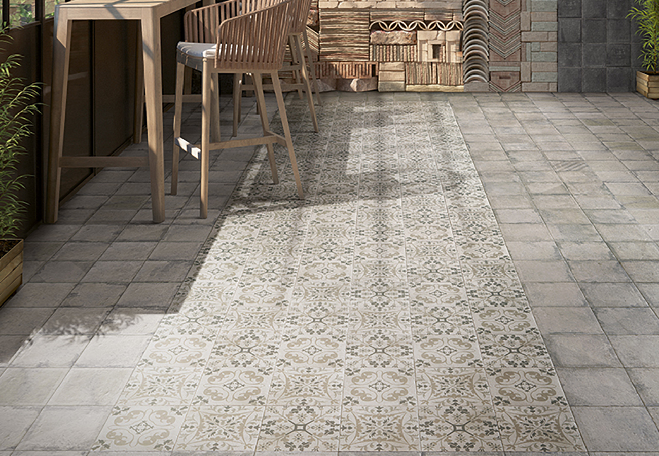 Su acabado mate con clasificación R10 Clase II permite su uso en suelos con humedad moderada.