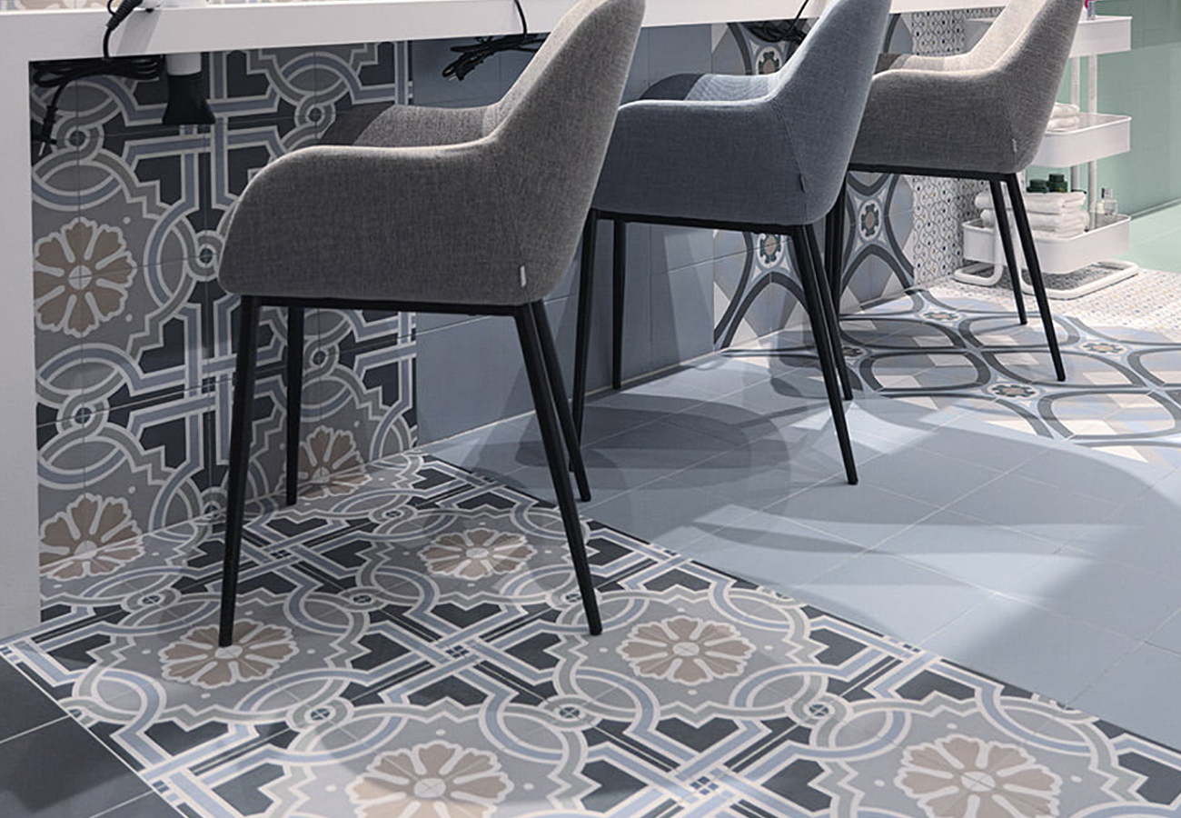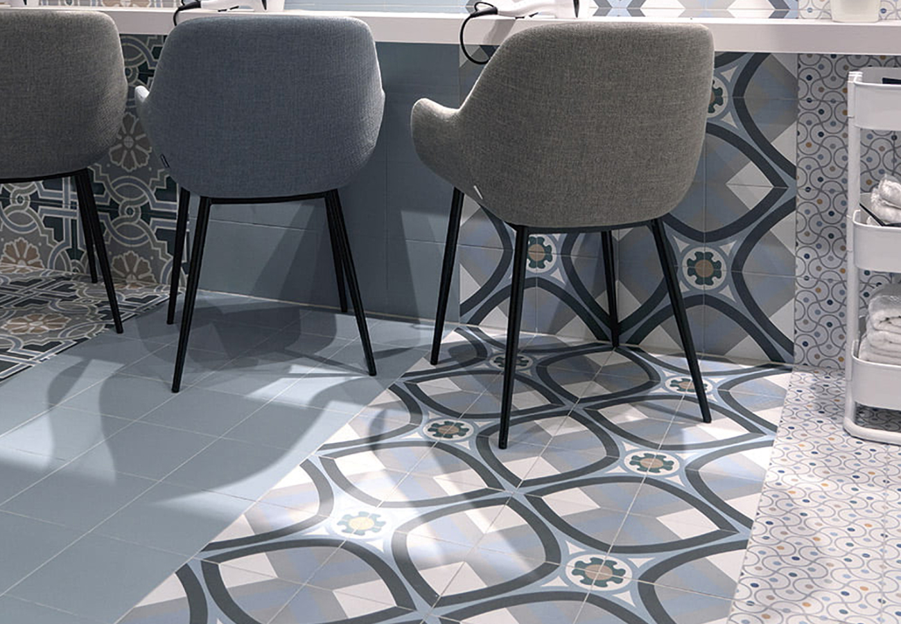 La serie Normandy reúne una amplia variedad de patrones inspirados en el estilo hidráulico y ornamental, permitiendo crear composiciones únicas con gran riqueza visual. Ideal para espacios que buscan personalidad sin renunciar a la elegancia.