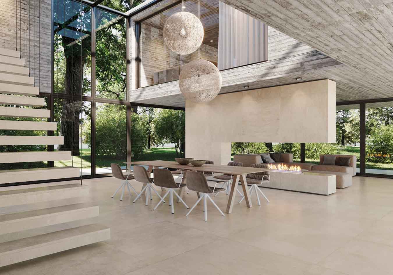 Uno de los mayores logros de la serie Opera es la eliminación de barreras visuales. Gracias a la disponibilidad de diferentes acabados para una misma gráfica, es posible utilizar la versión C1 en el interior de la vivienda y transicionar sin saltos cromáticos a la versión C3/R11 en la terraza. Esta “piel” cerámica continua expande la percepción del espacio, haciendo que el exterior se convierta en una extensión natural del salón.