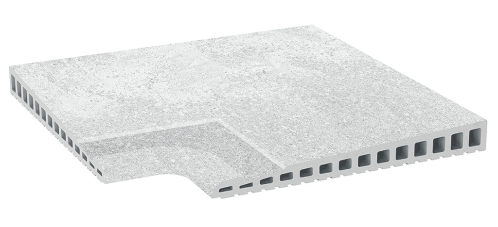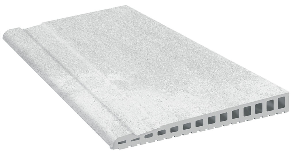 Peldaños de 120 cm: Piezas de una sola pieza que evitan cortes innecesarios y garantizan una estética limpia en escaleras y bordes.