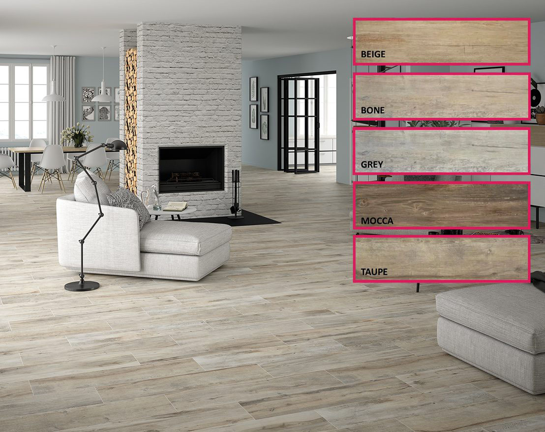 La Serie Shireen está disponible en una gama de colores sofisticados y elegantes, que incluyen Bone, Grey, Taupe, Beige y Mocca. Estos tonos permiten combinaciones creativas y personalizadas, aportando un toque único a cada estancia. Ya sea para suelos o paredes, esta serie es apta para cualquier aplicación interior, brindando un aspecto natural y acogedor.