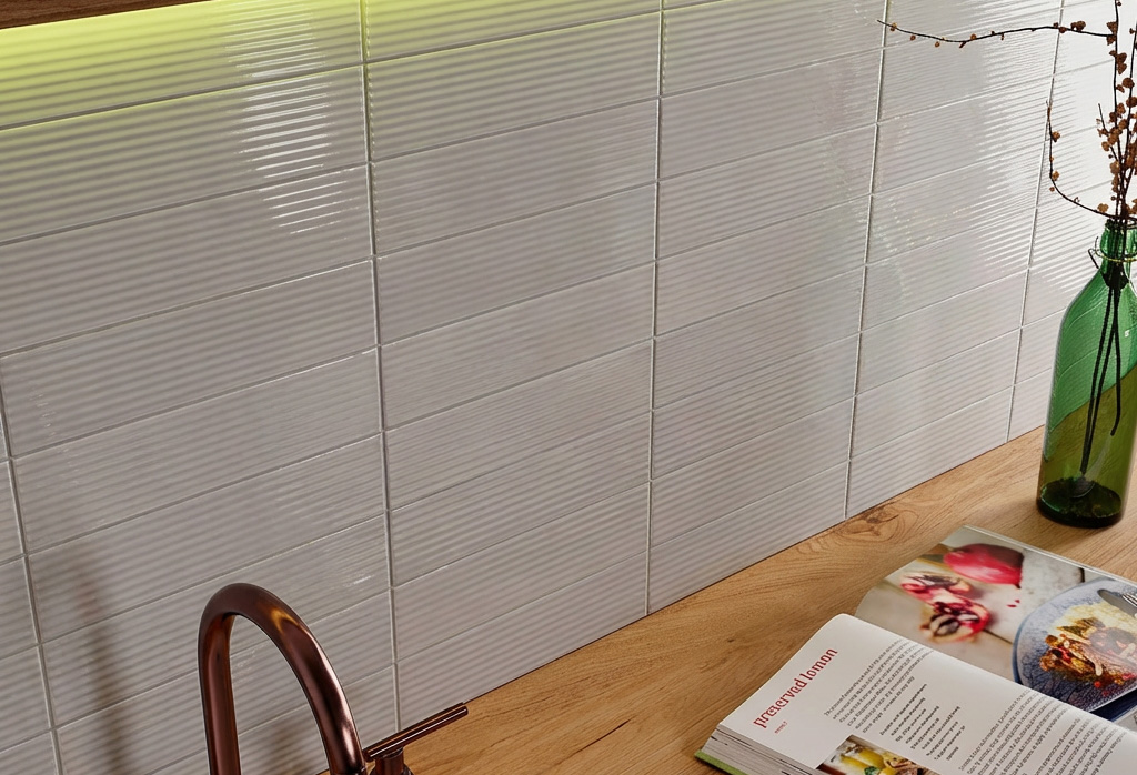 Es una colección compuesta por 5 colores en acabado mate. Su tacto es ligeramente rugoso y recuerda al de una pared de yeso. Sus bordes son perfectamente rectos. Su superficie está surcada por multitud de líneas irregulares y paralelas y salpicada de agujeritos que le dan el aspecto de una baldosa klinker fabricada mediante el sistema de extrusión.