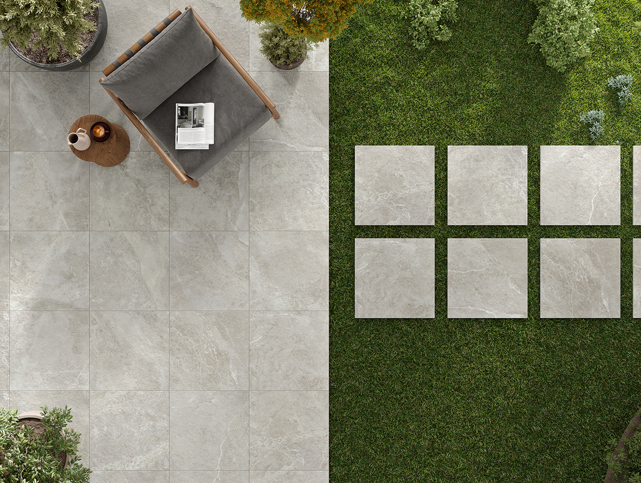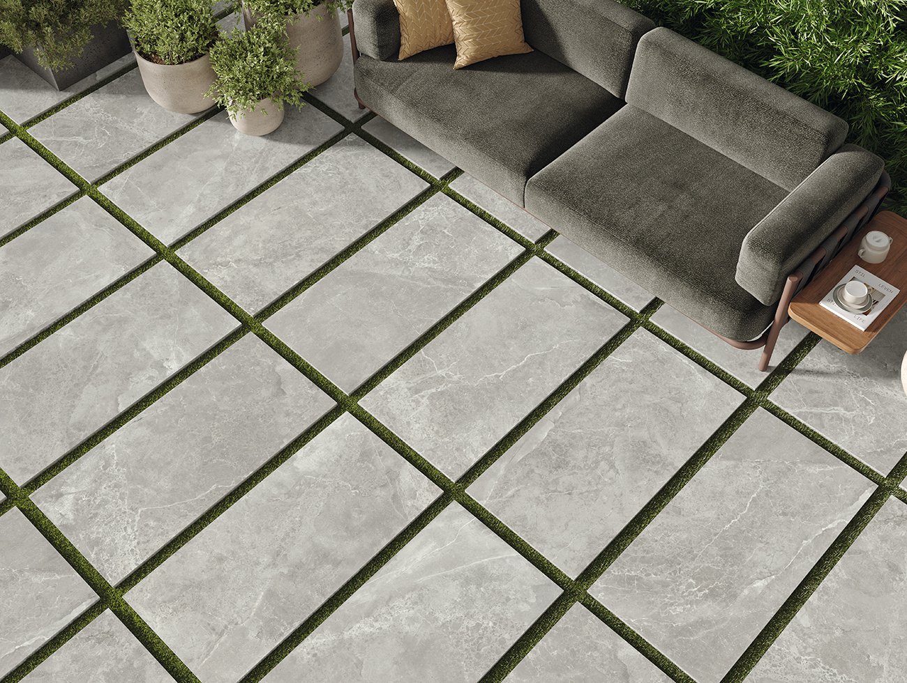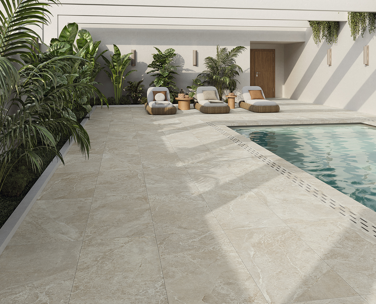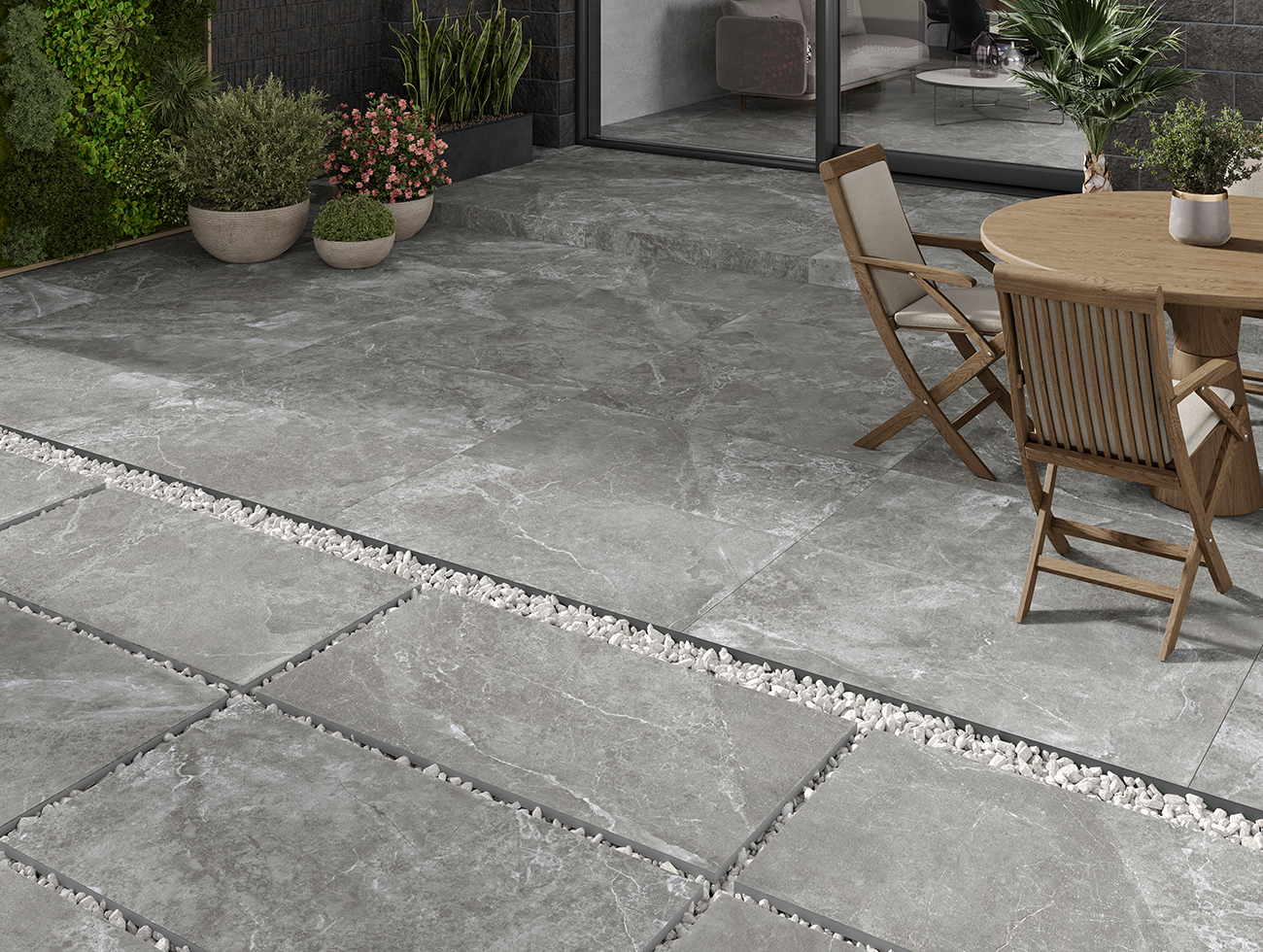 Debido al acabado SLIPSTOP que presentan algunos formatos, este azulejo es perfecto para exteriores gracias a su textura suave pero a la vez antideslizante C3.