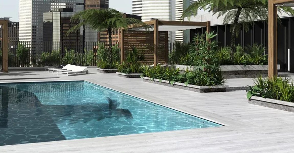 Disponibilidad en grandes formatos, perfectos para proyectos ambiciosos que buscan una estética continua y moderna, dispone de acabados superficiales que ofrecen soluciones para escaleras, muros y piscinas, enriqueciendo cualquier espacio exterior con un toque de diseño.